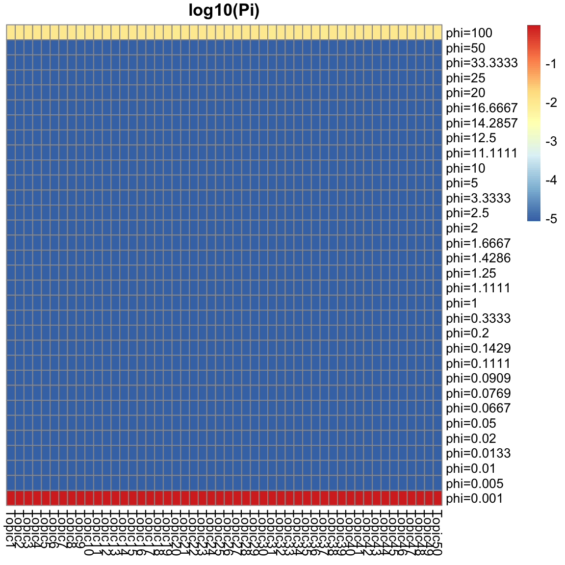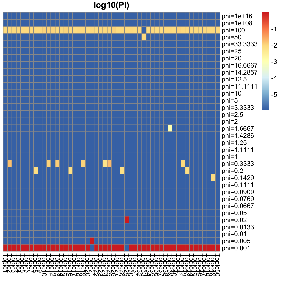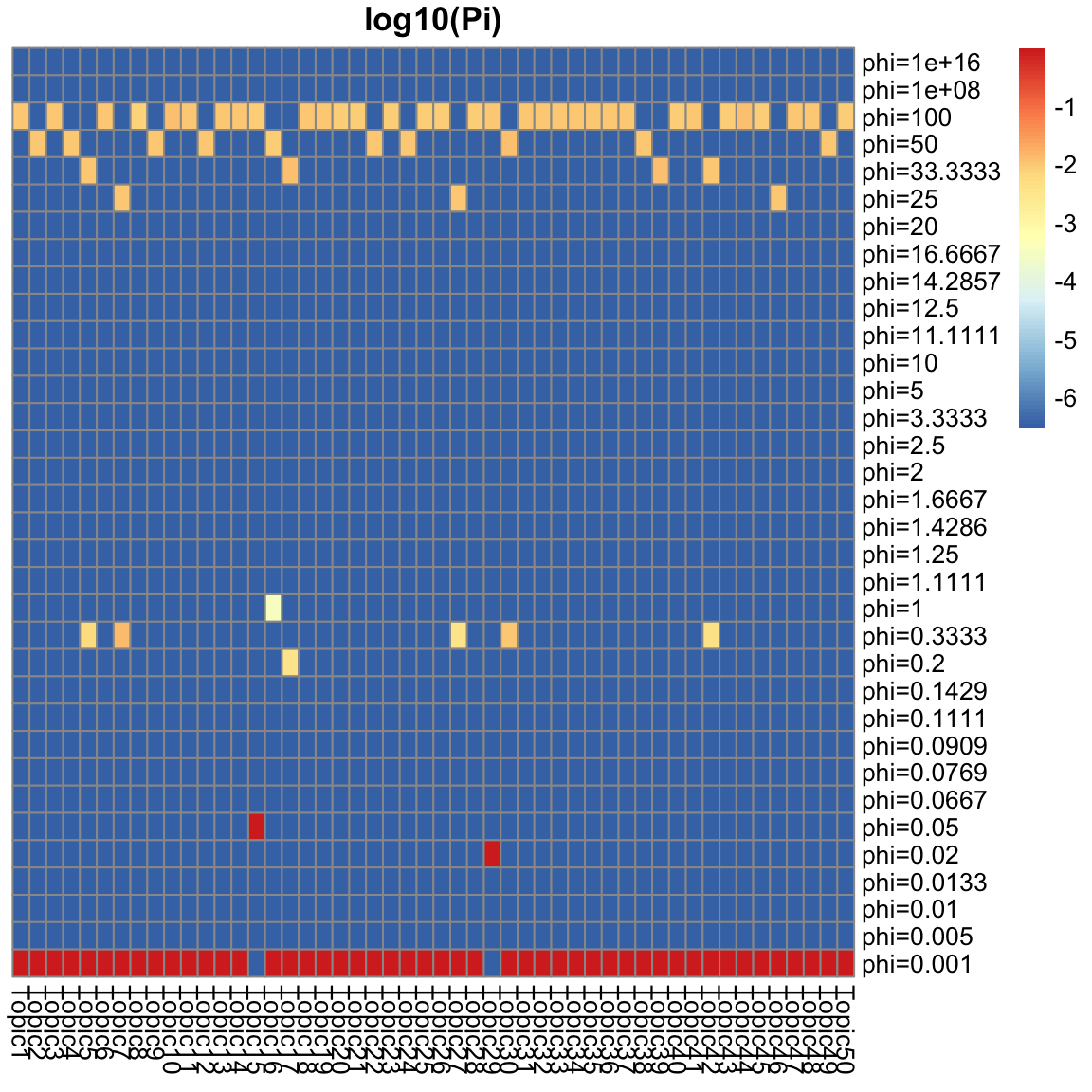 ## pi around 0.01 for phi = 100, and 0.99 for phi = 0.001 (truth: around 0.01 are top words)