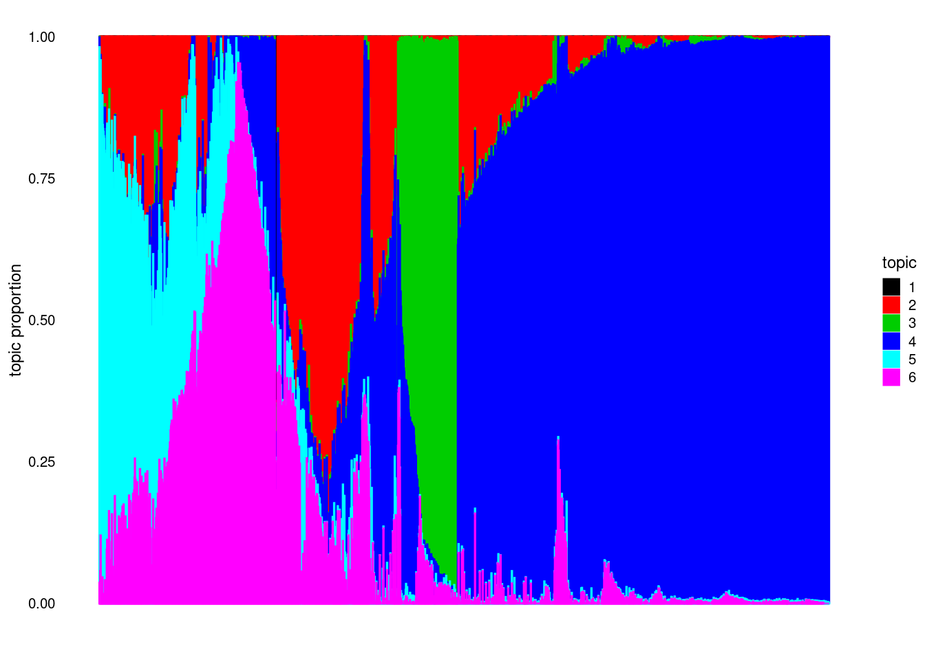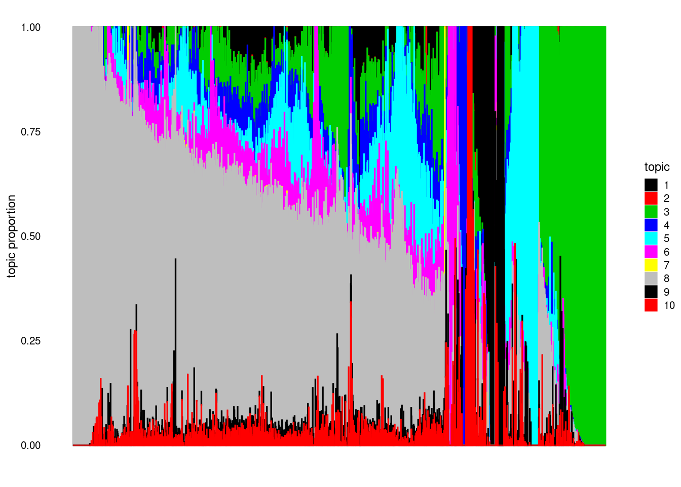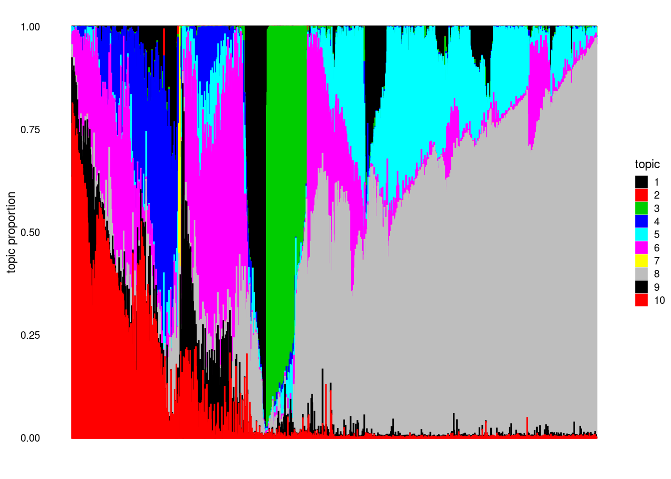 structure_plot(model, colors = 1:k, topics = 1:k)