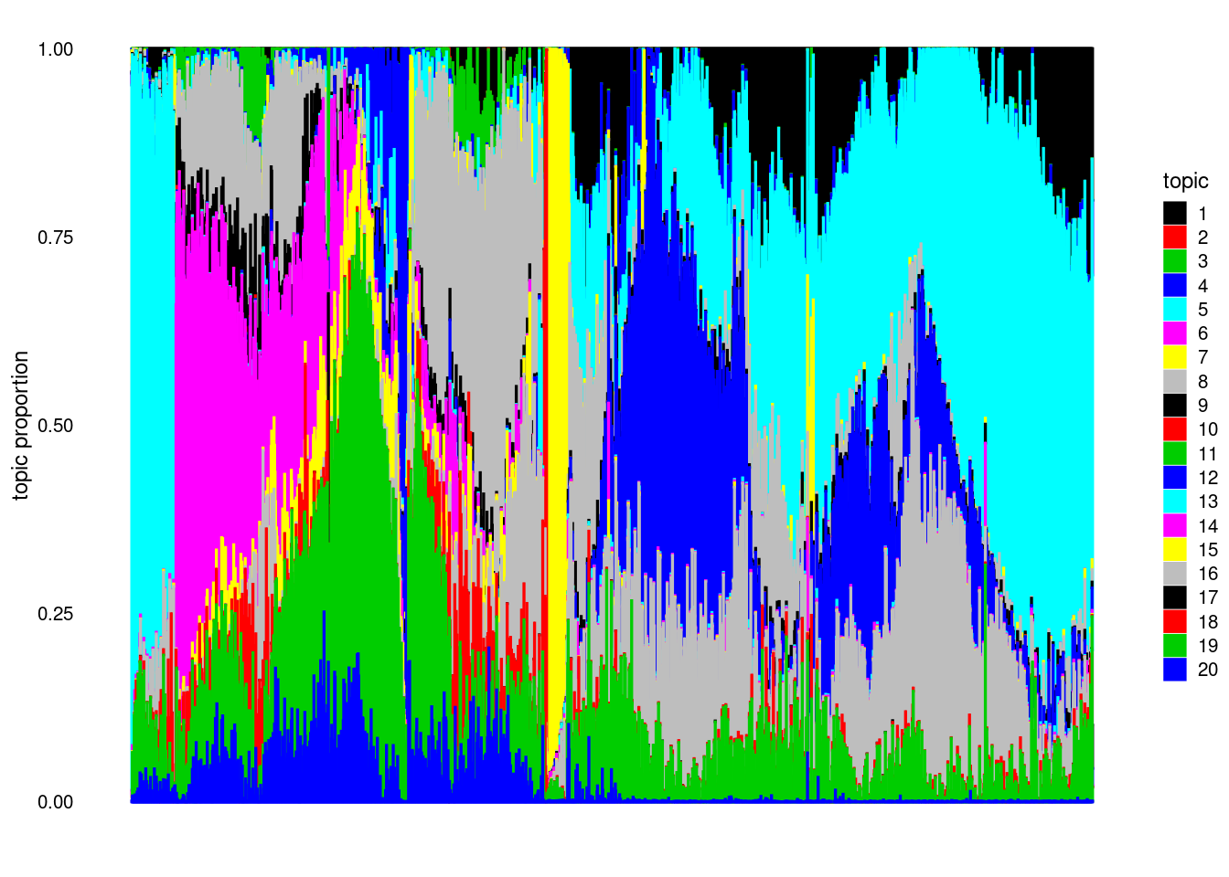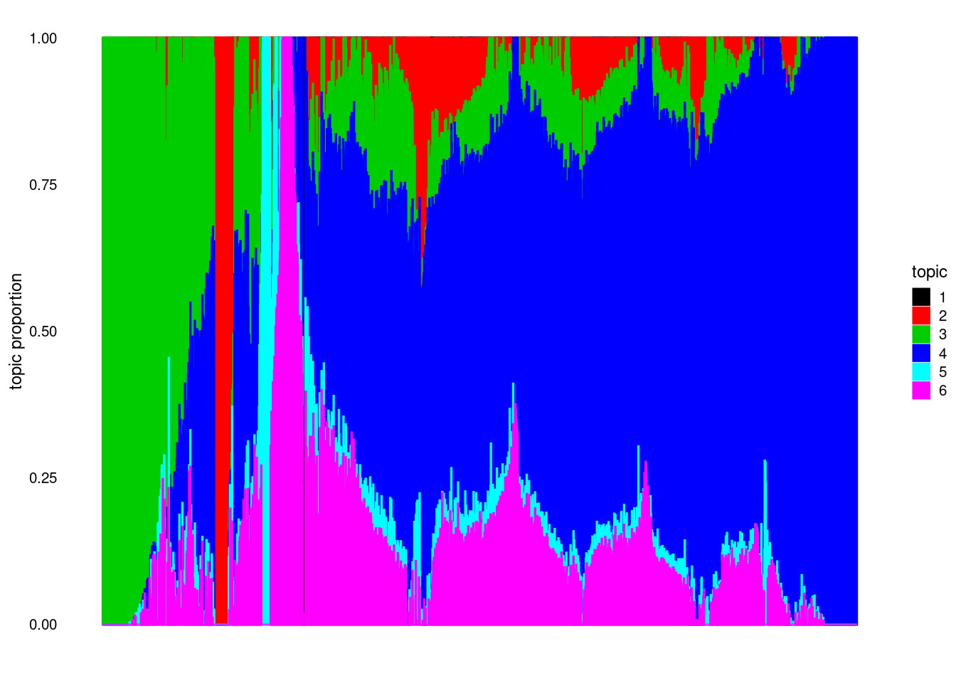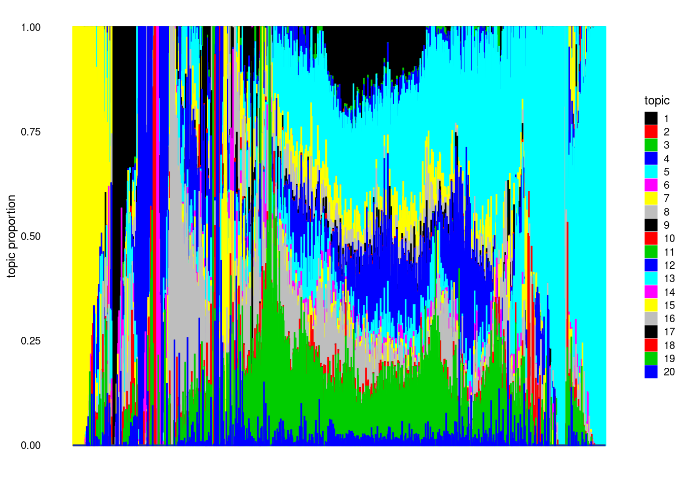 structure_plot(model, colors = 1:k, topics = 1:k)