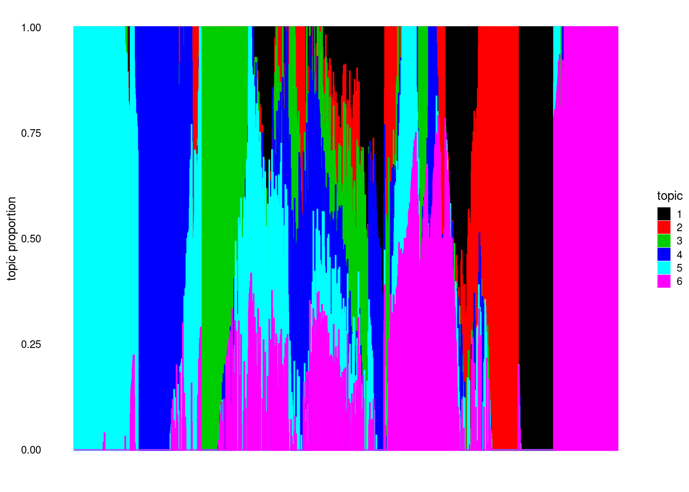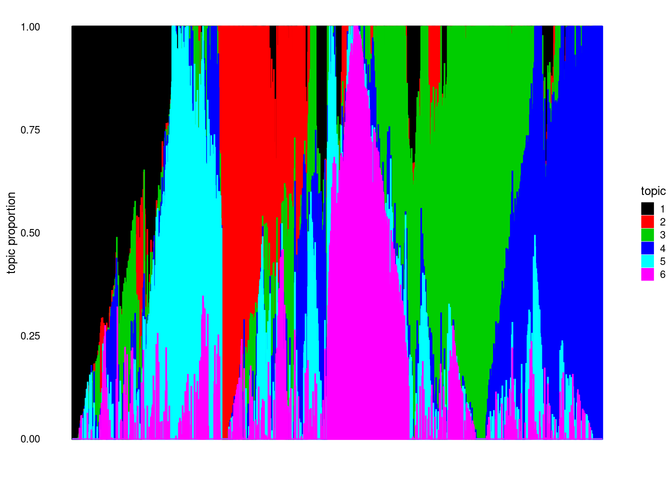 structure_plot(model, colors = 1:k, topics = 1:k)