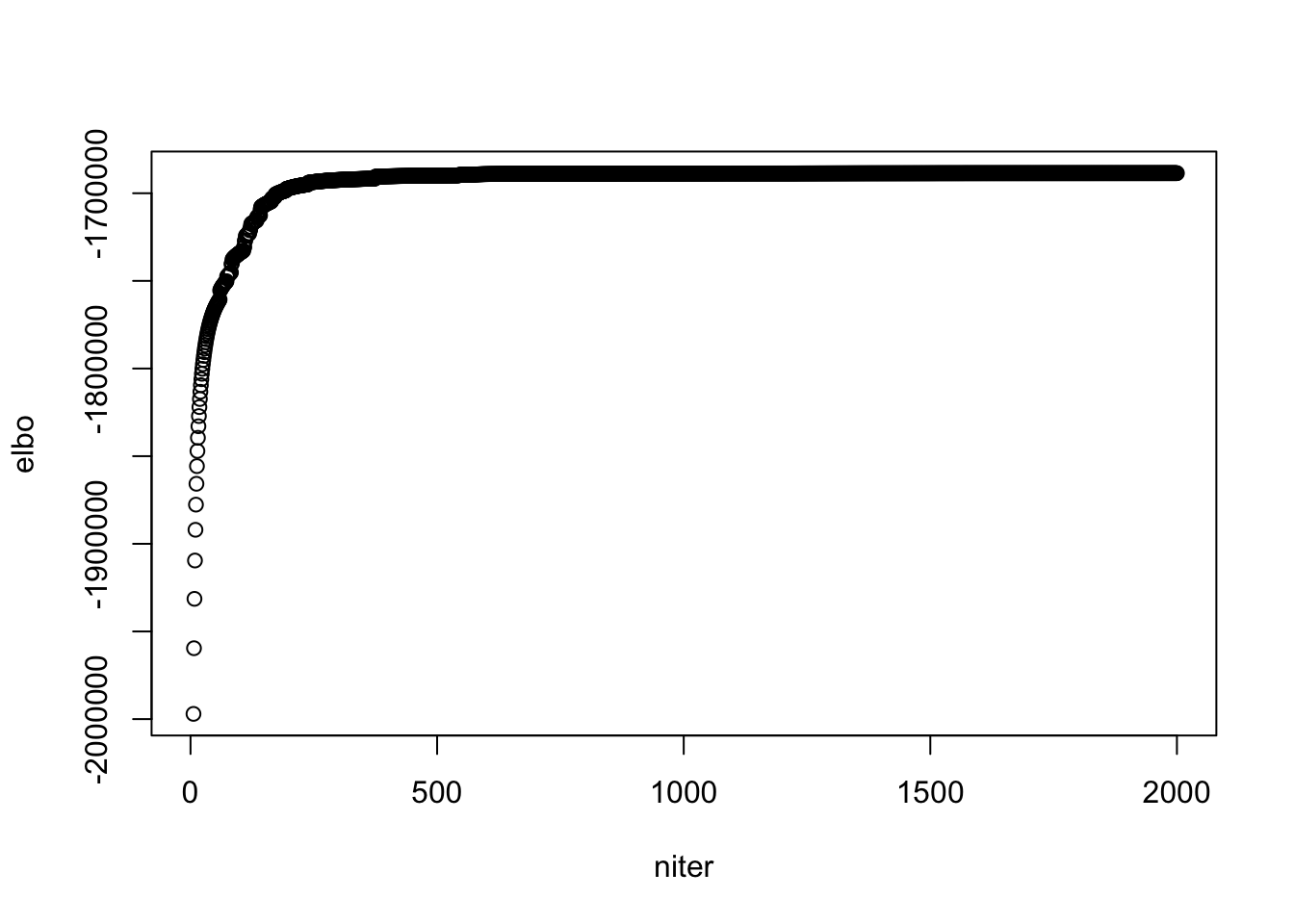 plot(model$ELBO, xlab = "niter", ylab = "elbo")
