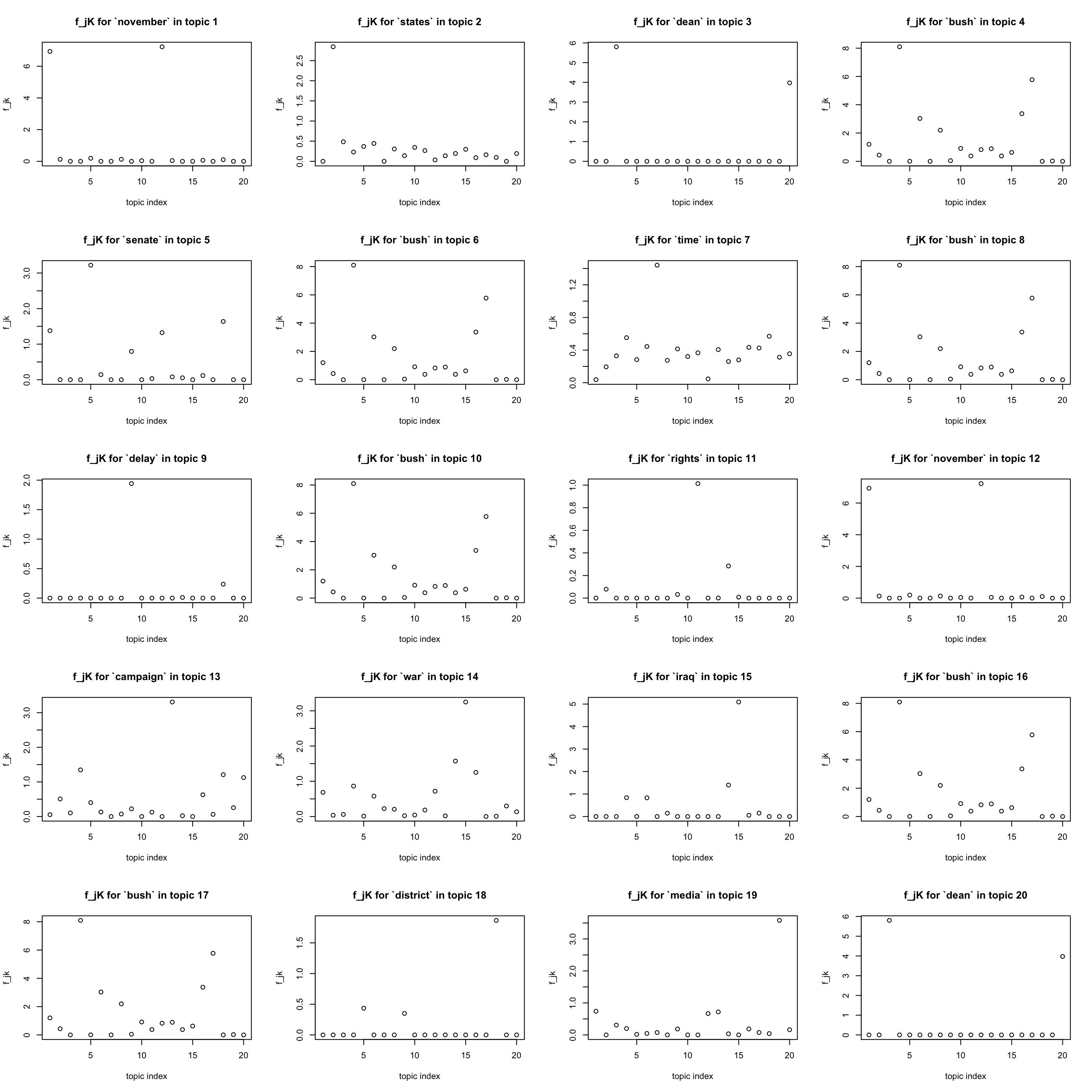 main = sprintf("f_jK for `%s` in topic %d", dict[j], k))