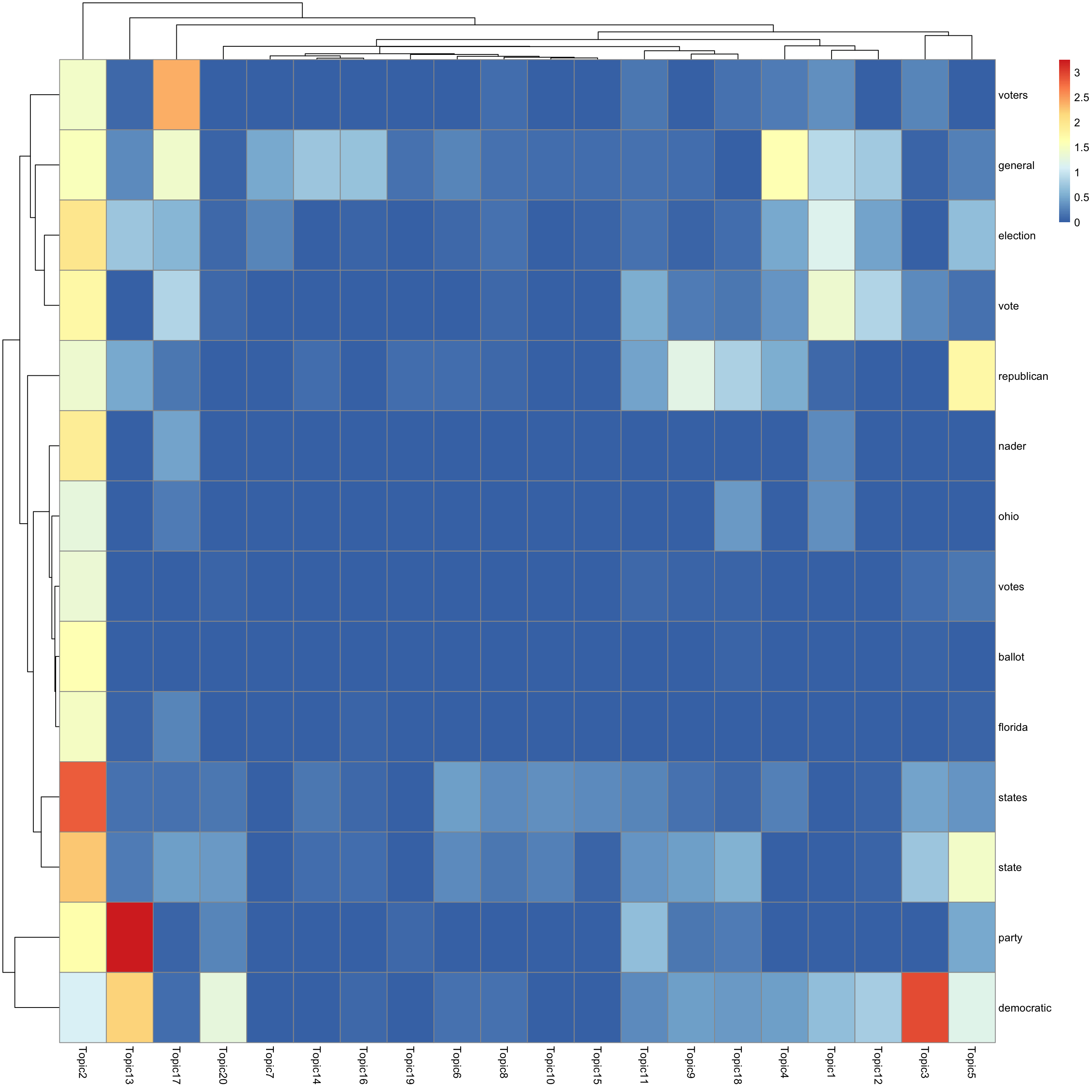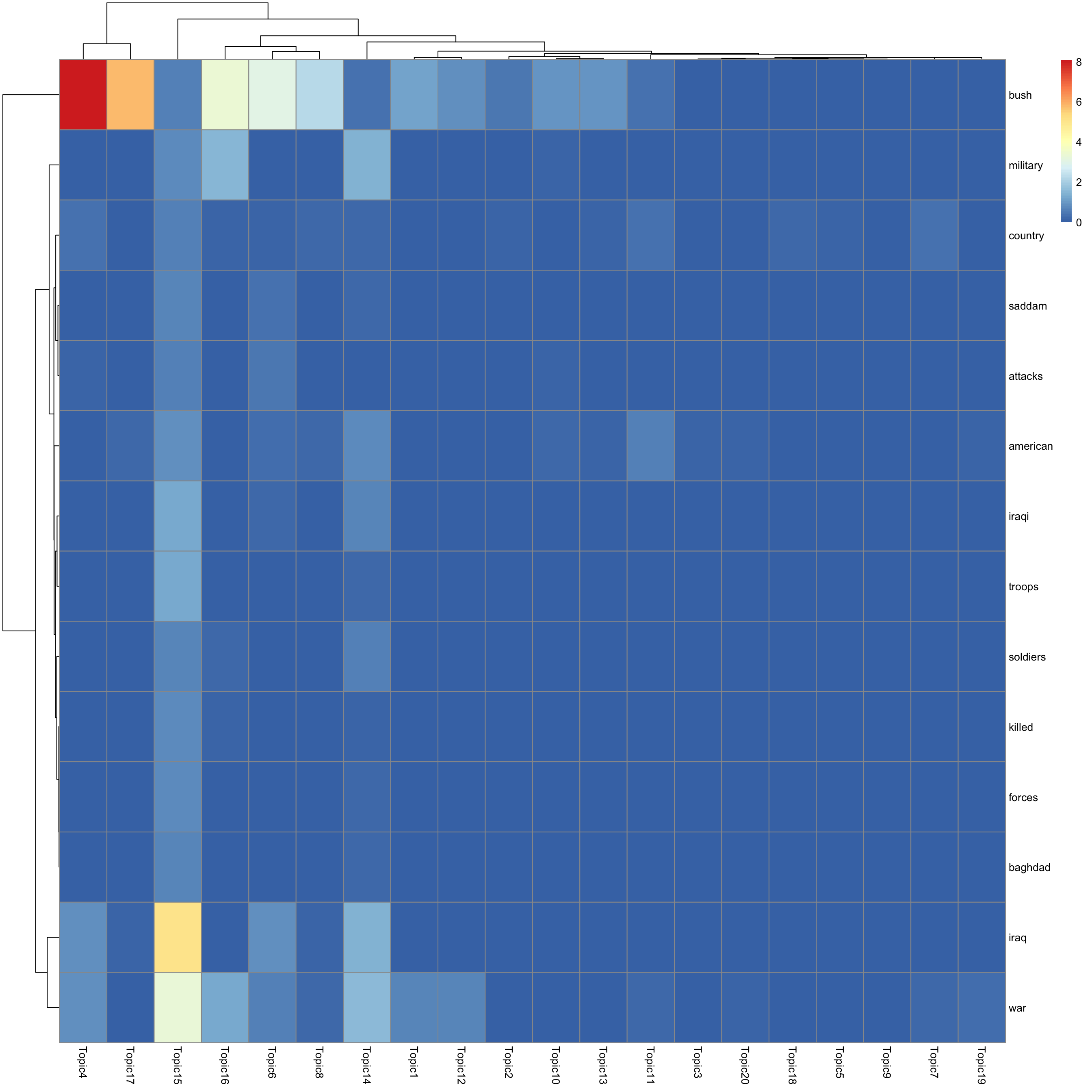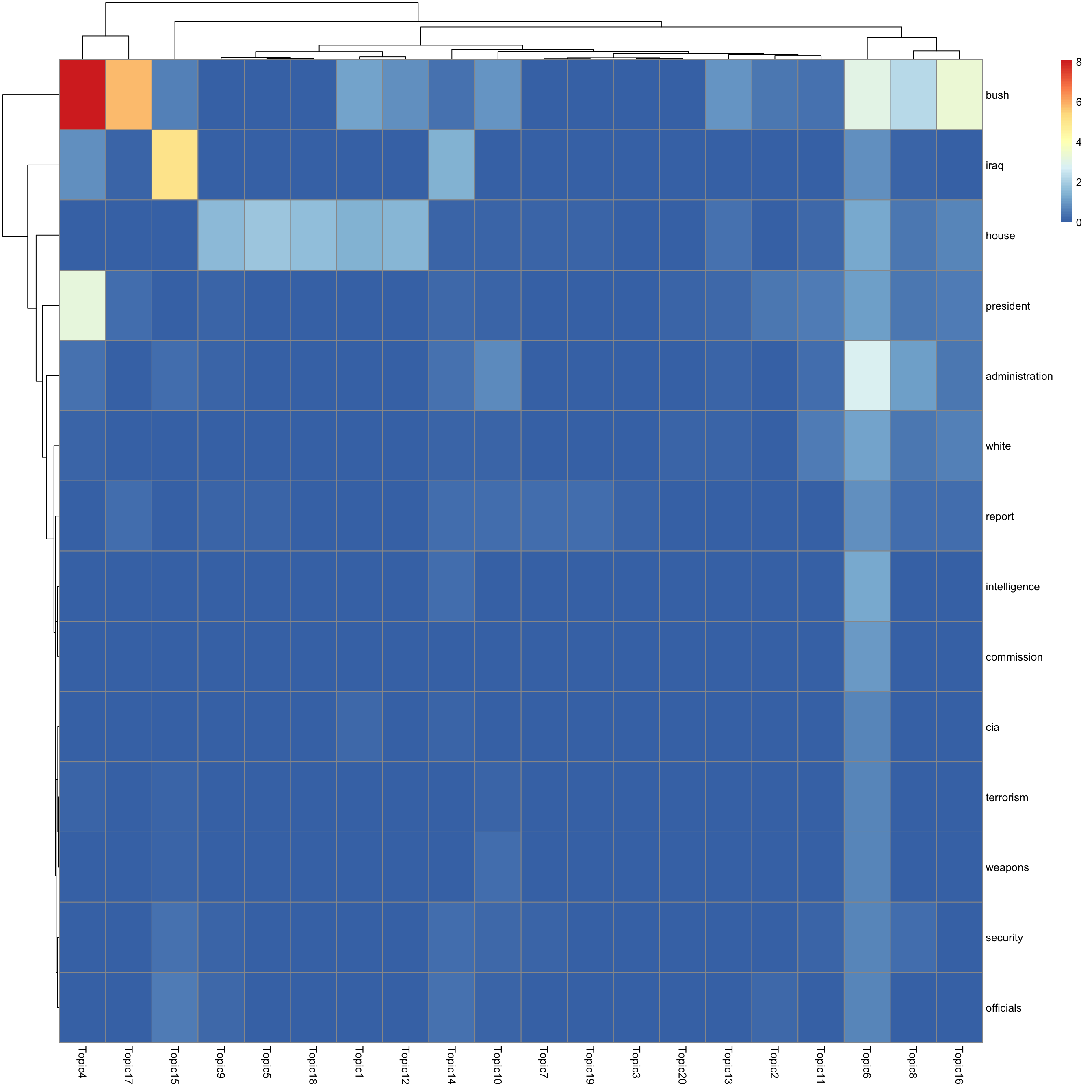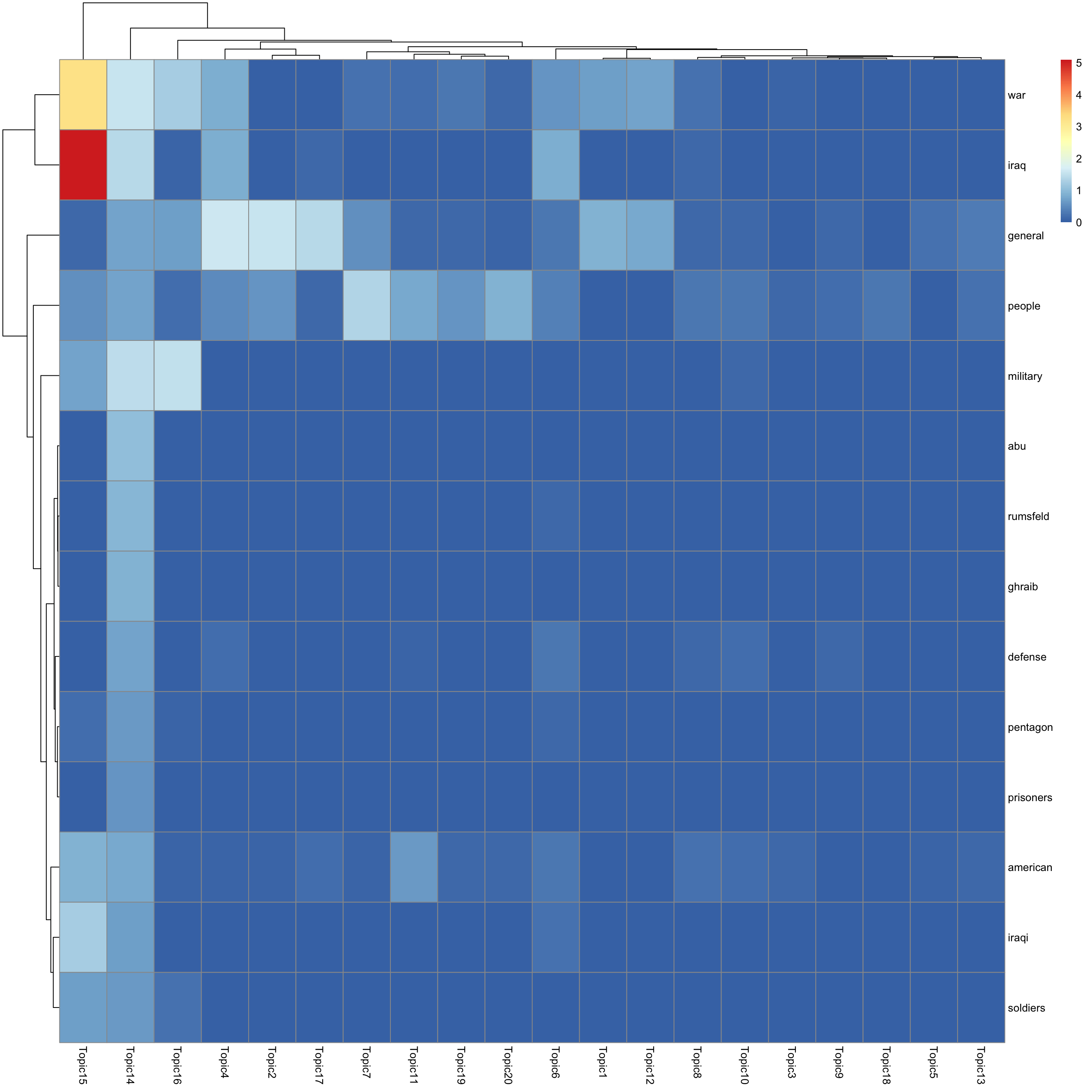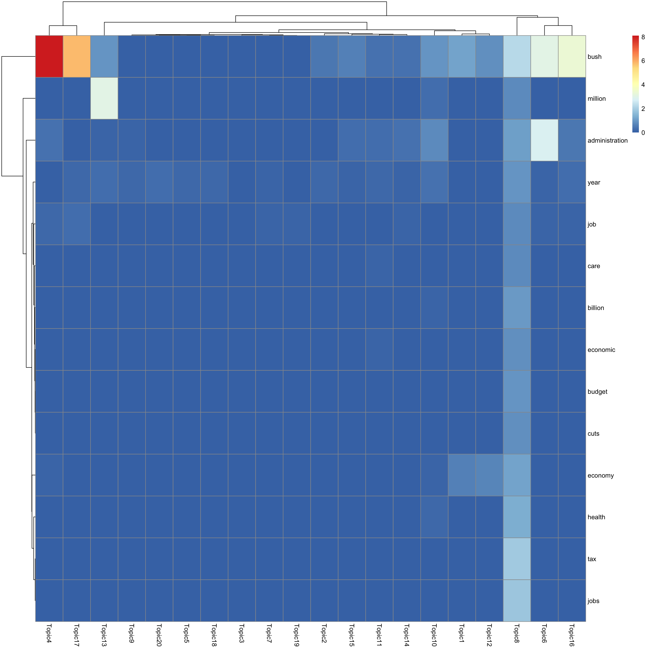 look at top words using pheatmap