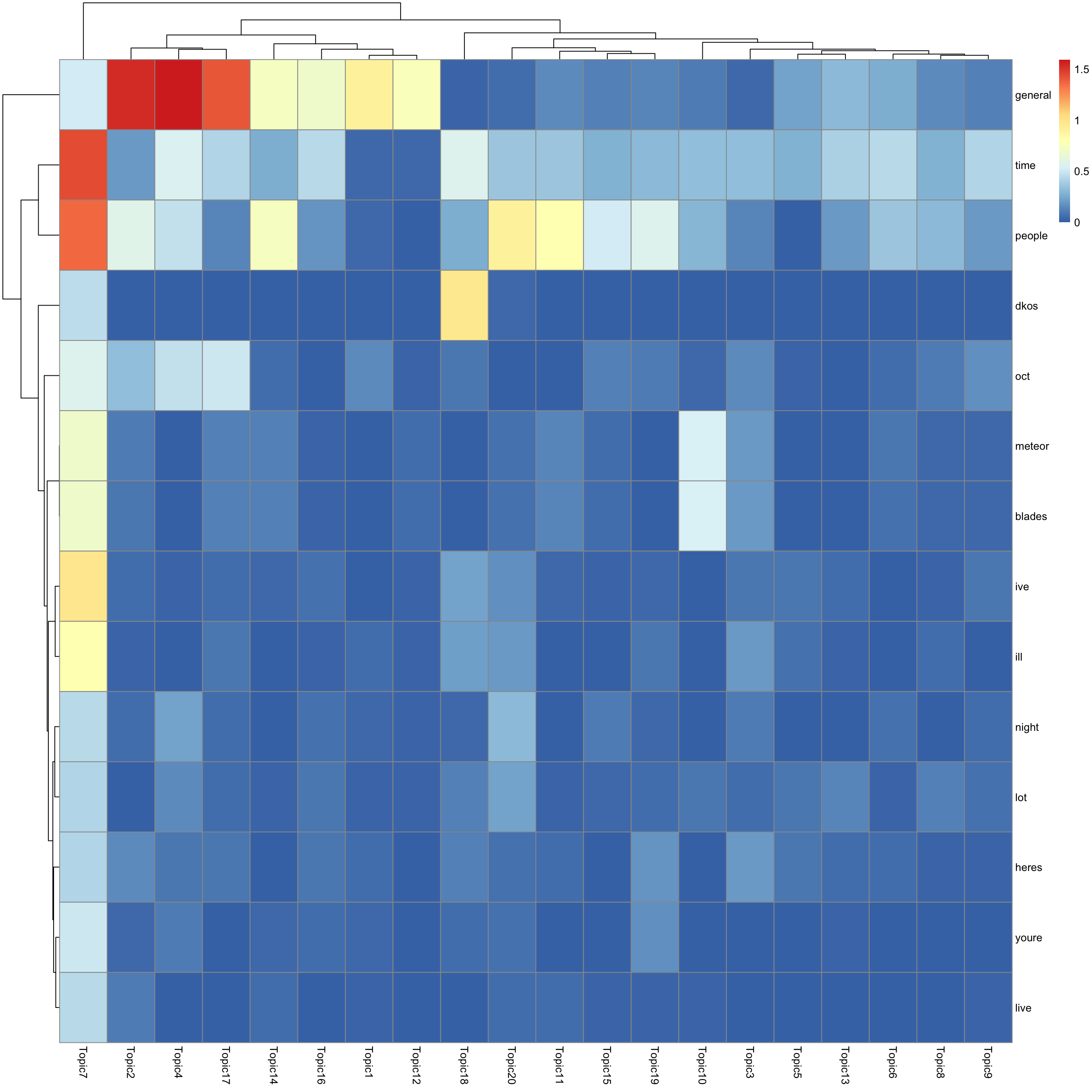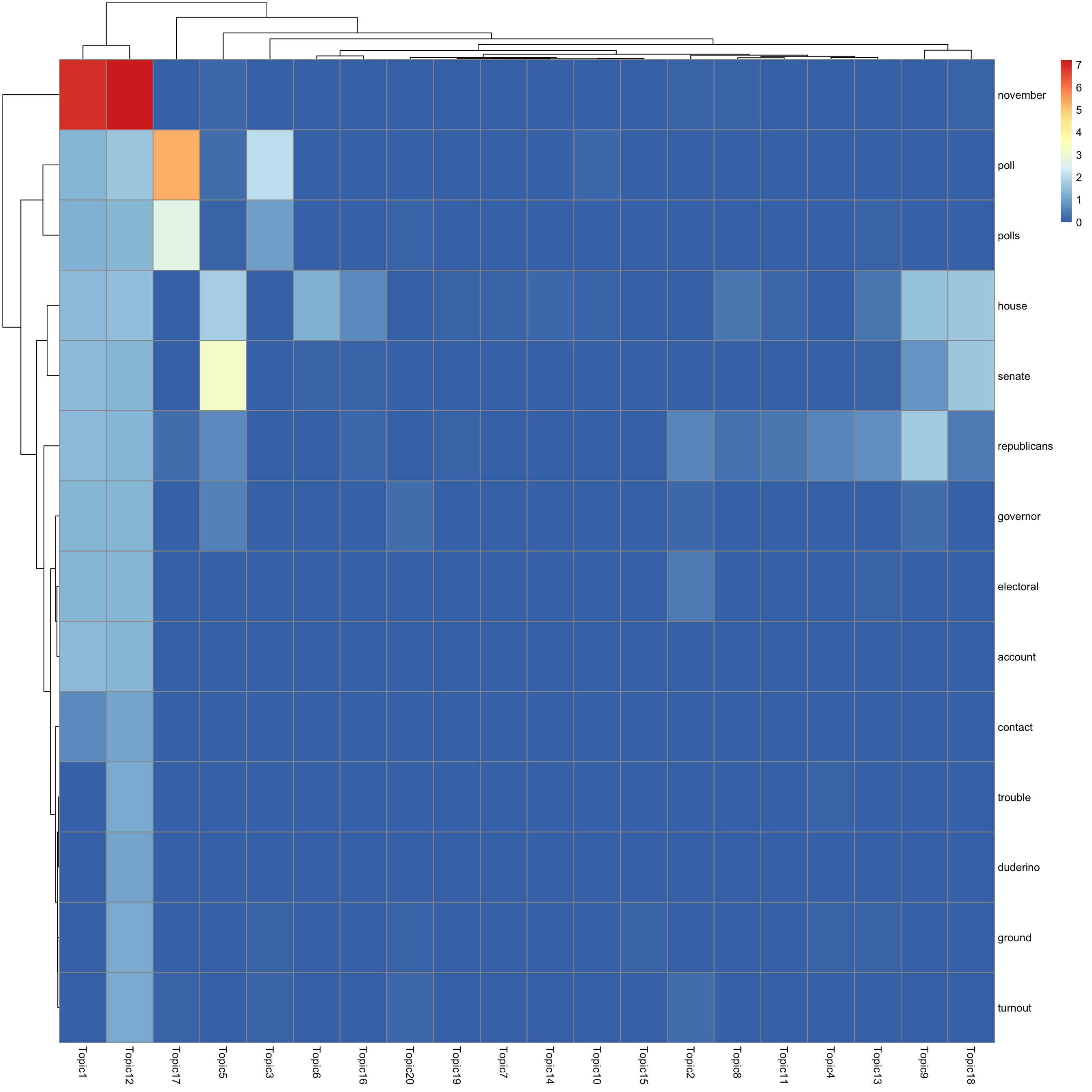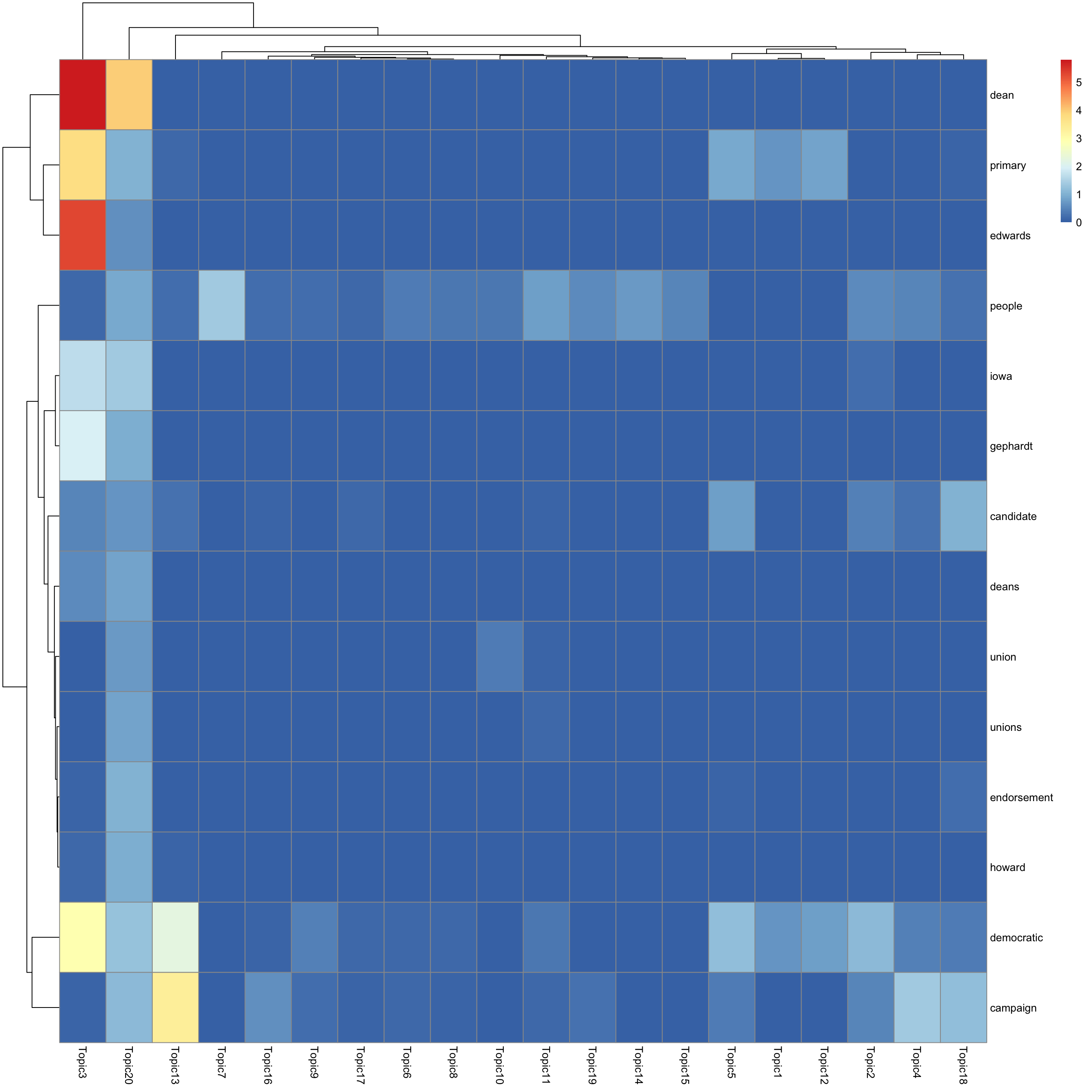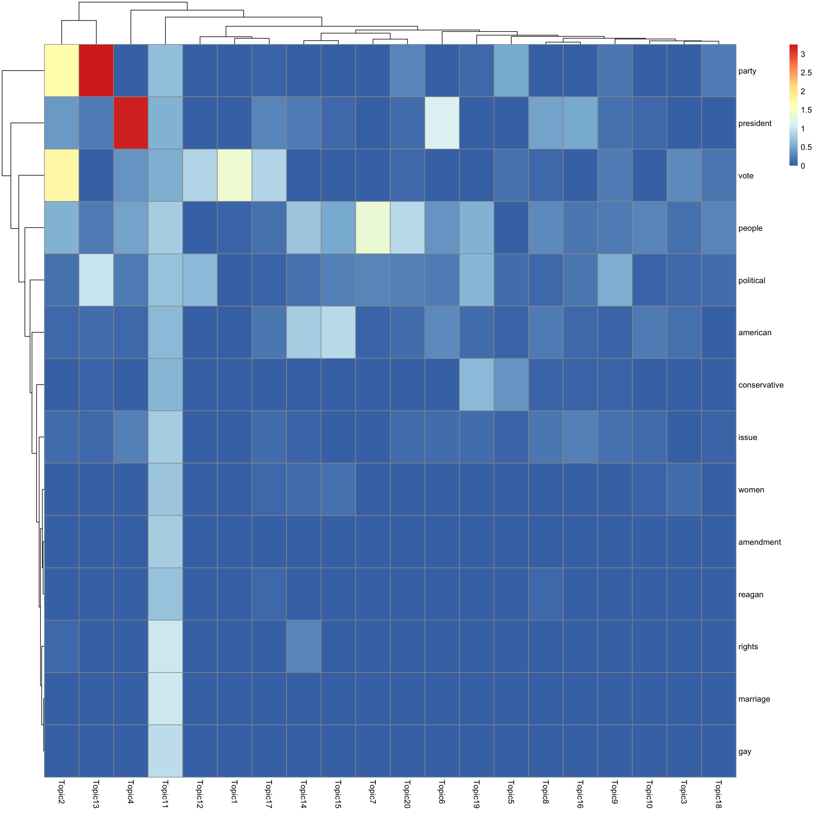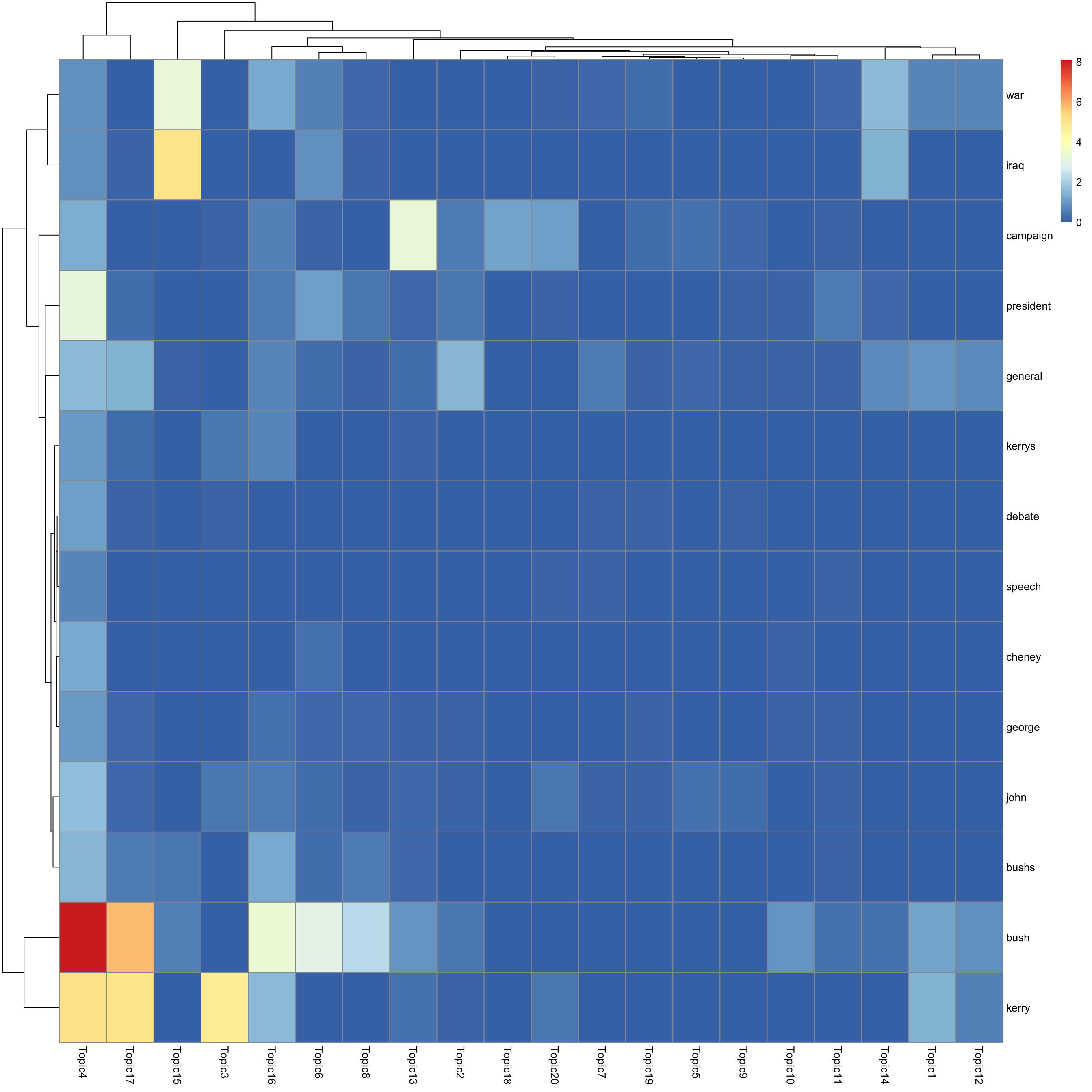 look at top words using pheatmap