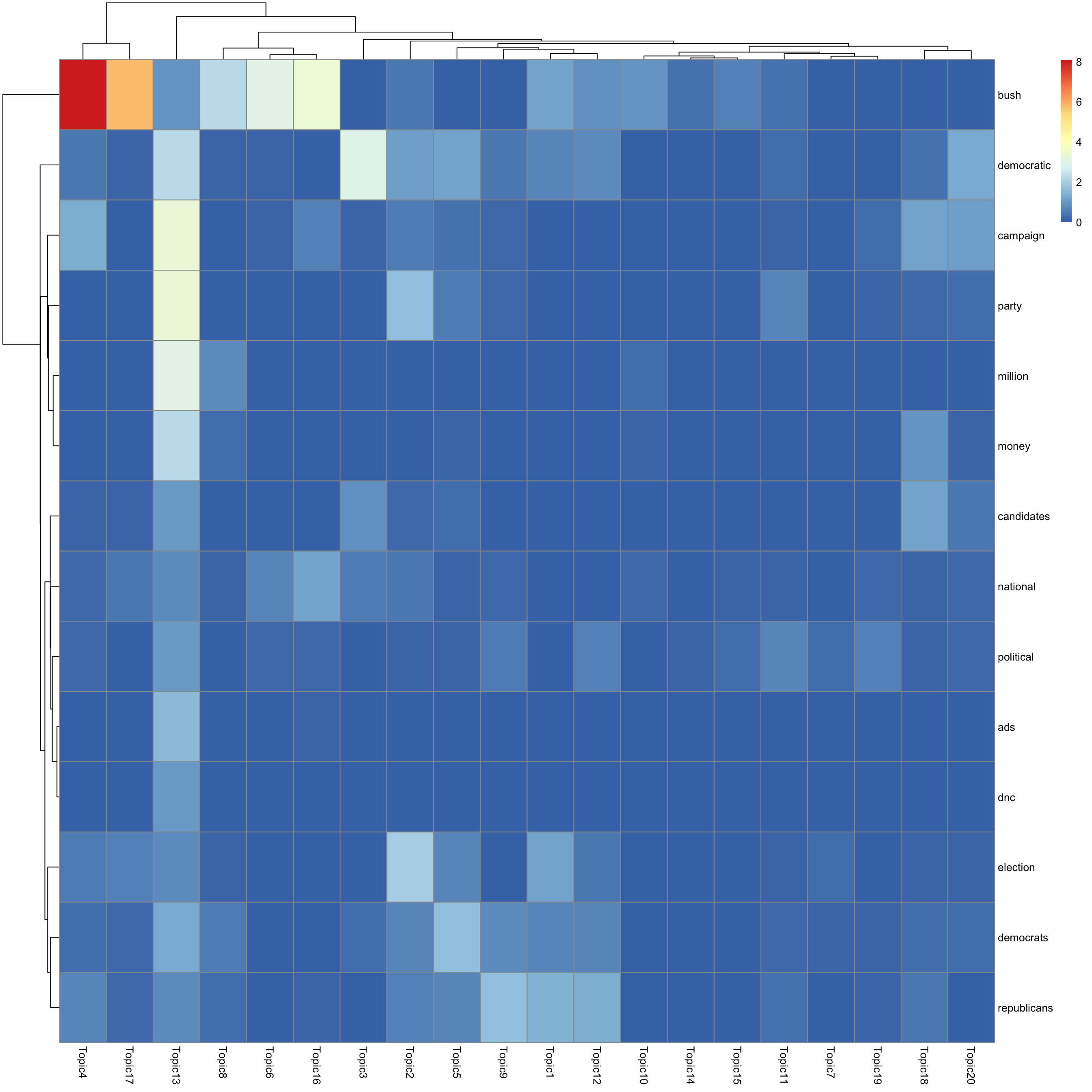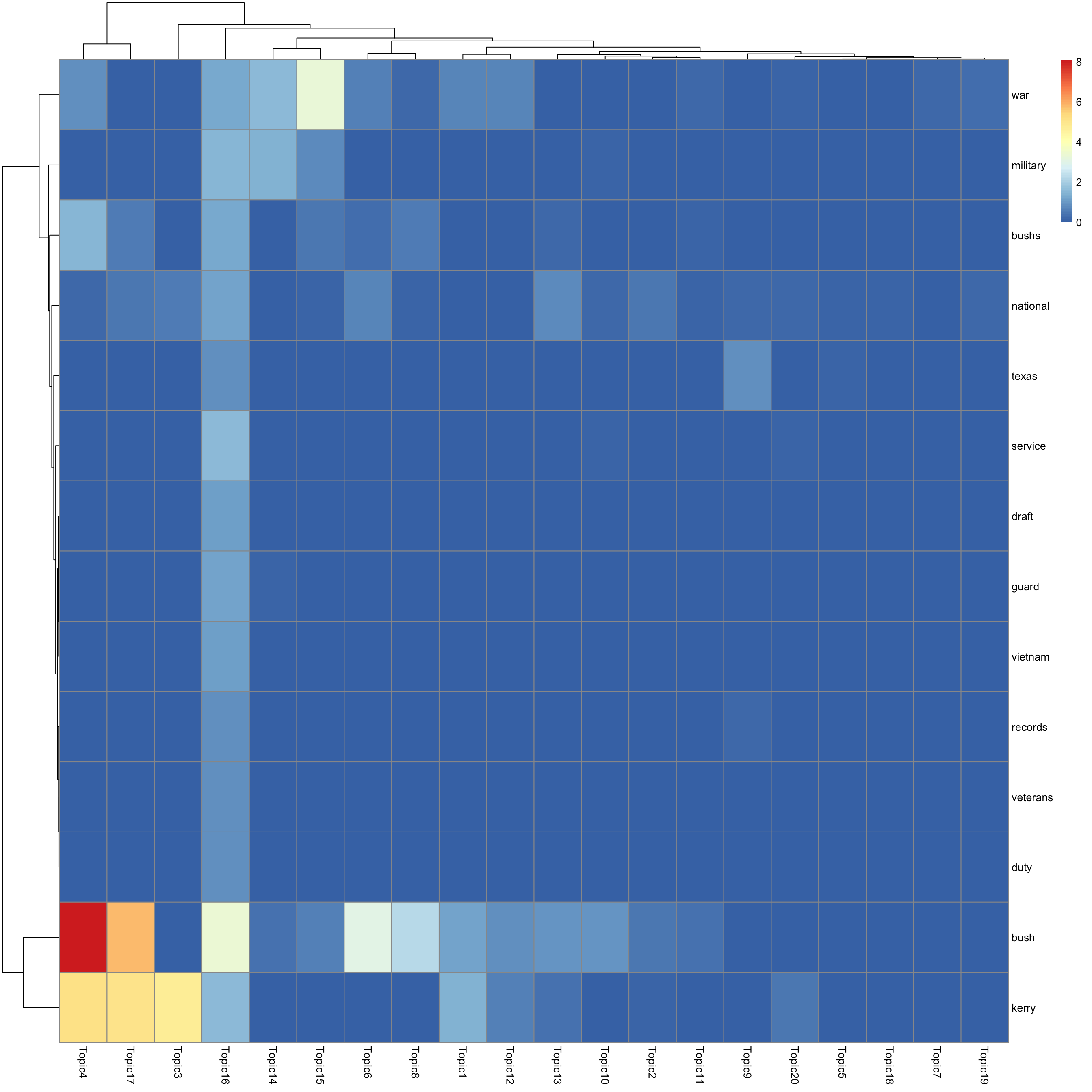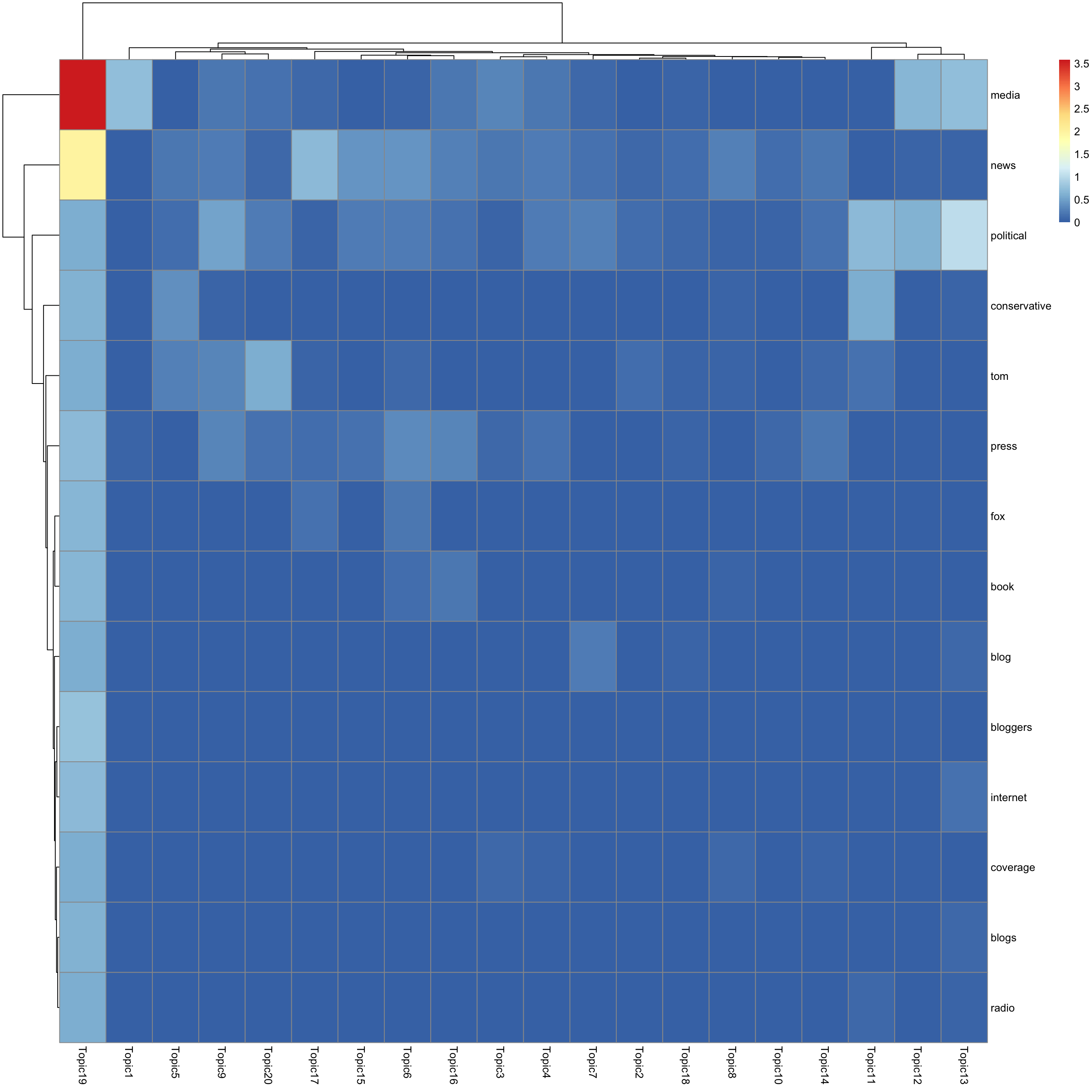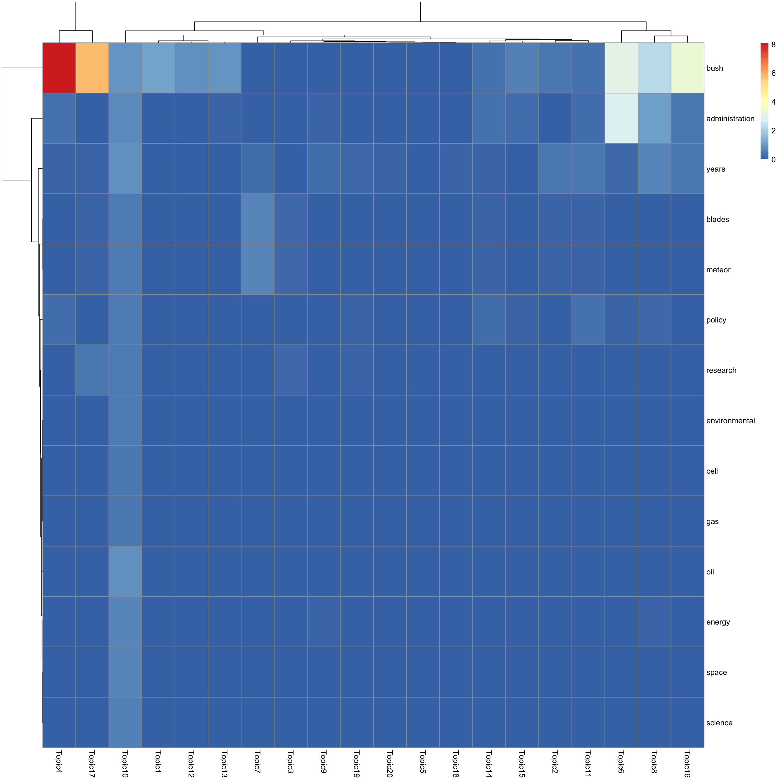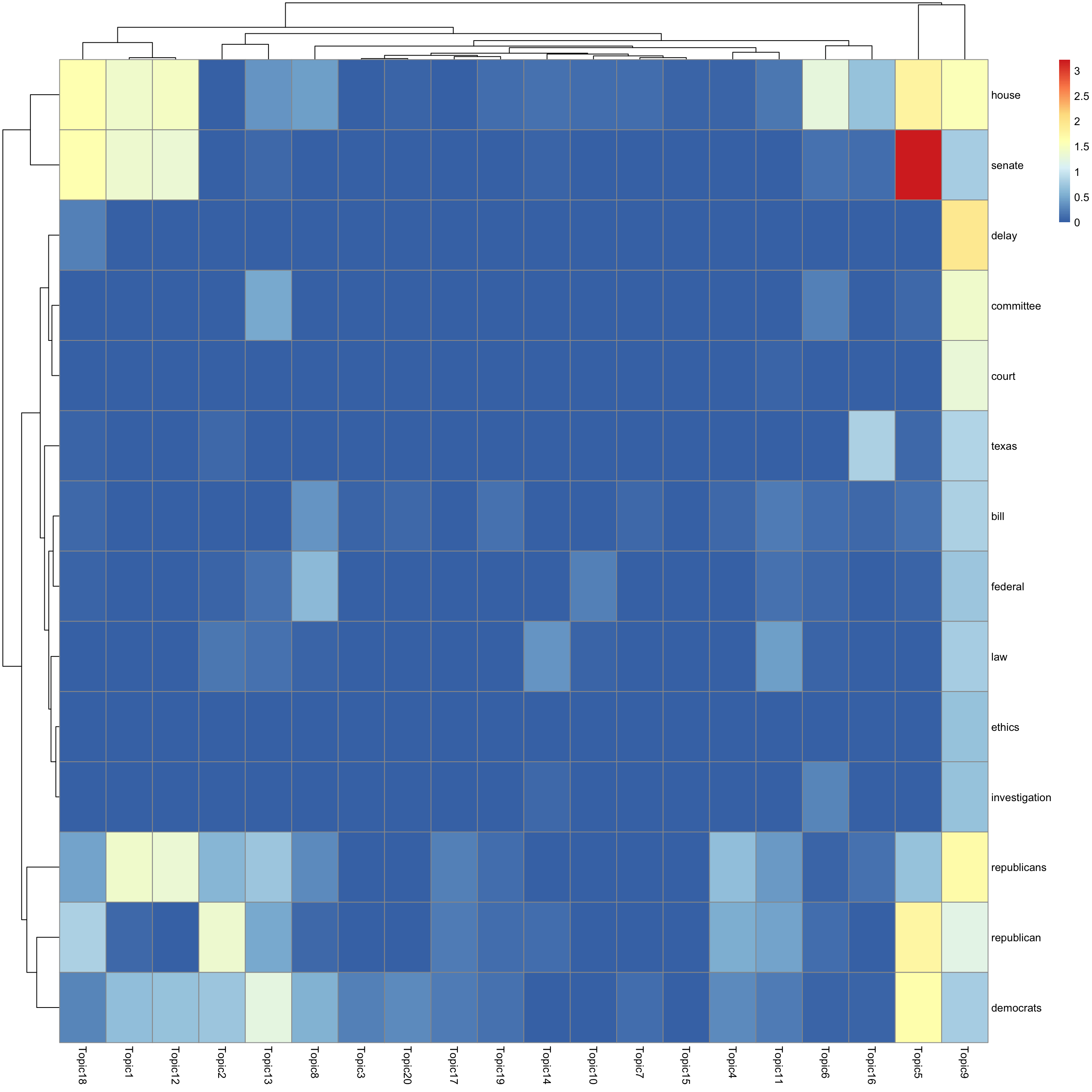 look at top words using pheatmap